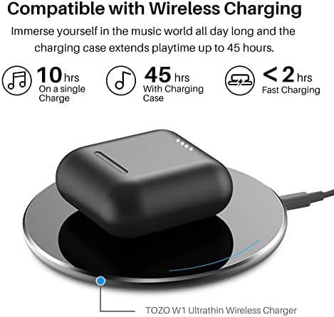 [Charge on the go] Playtime lasts for over 10 hours from single charge and total 45 hours with charging case. Enjoy fast charging, to fully charge the rechargerable case only 55 minutes via cable or less than 2 hours via wireless charger. Providing convenient charging way with no strings attached.