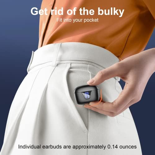 LED Digital Display & 50H Play Time – The digital LED power display on the outside of the case facilitates easily manage of power, and the 400mAh battery capacity of the charging case provides five full charges for both 40mAh earbuds, each lasting play to five hours on a single charge. hence by taking turns, true wireless earbuds can keep up with your rhythm for 50 hours long.